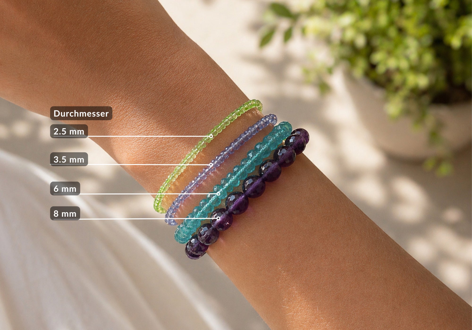 Damit das Armband harmonisch wirkt, spielt der Durchmesser der Perlen eine entscheidende Rolle. Je nach Größe wirkt das Armband filigran und dezent oder etwas präsenter und ausdrucksstärker.